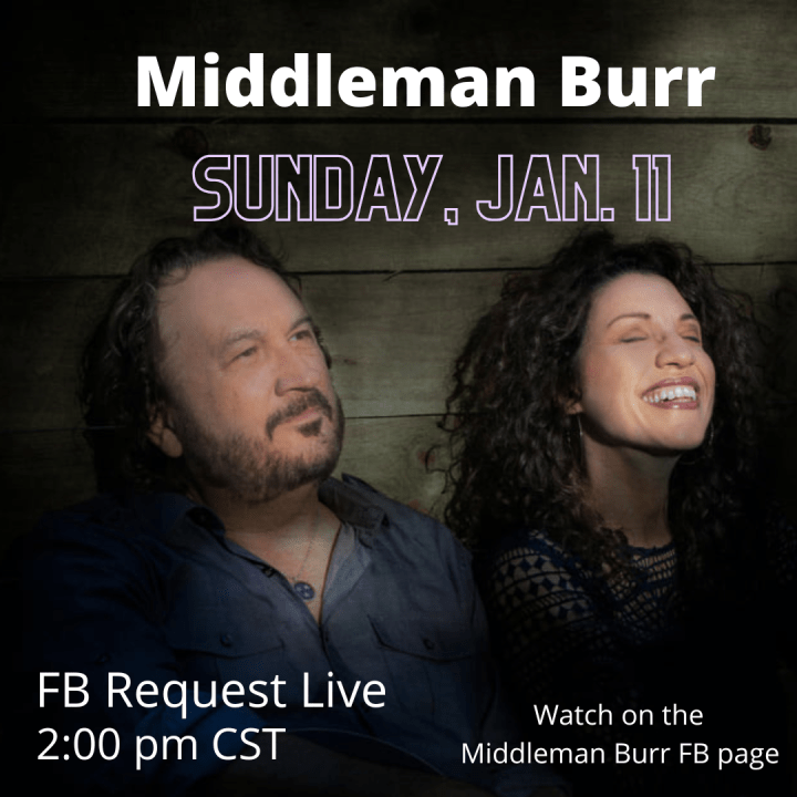Please join us for our FB LIVE performance on Wednesday, Jan. 11th at 2:00 p.m. CST on our Middleman Burr Facebook Page! We’ll be playing original songs of ours that you requested throughout the week. You can email your requests to: middlemanburr@gmail.com.